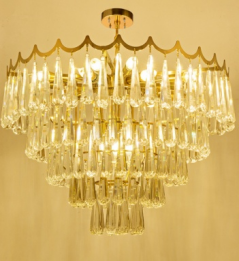 Mẫu đèn chùm pha lê được thiết kế theo phong cách hiện đại, đường nét tinh tế, đến đến vẻ đẹp sang trọng và tuyệt mỹ cho không gian nội thất. Đặc biệt, với chất liệu thủy tinh cao cấp, có độ cứng cao, giúp cho phần chao của bộ đèn bảo vệ đầu bóng tốt nhất. Bên cạnh đó, một yếu tố không thể thiếu trong cấu tạo của chiếc đèn chùm pha lê đó là những hạt pha lê làm đèn chùm lấp lánh. Mang đến một ánh sáng đẹp, đa màu sắc cho không gian thoáng đãng và sang trọng.